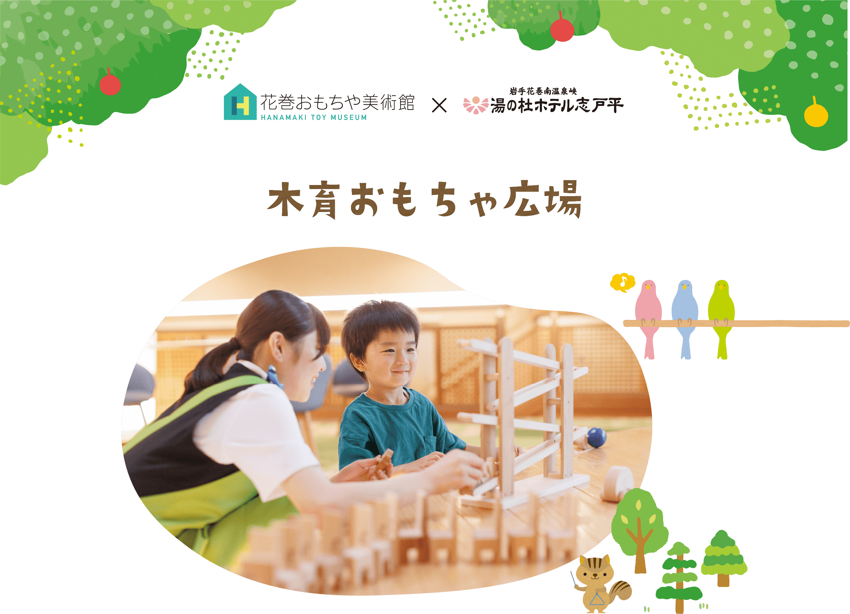 ※1歳~2歳のお子様はサービスにてホテル志戸平をご利用頂けますが、花巻おもちゃ美術館チケットについては現地にて別途ご購入頂きます。 - ご予約・詳細はこちら