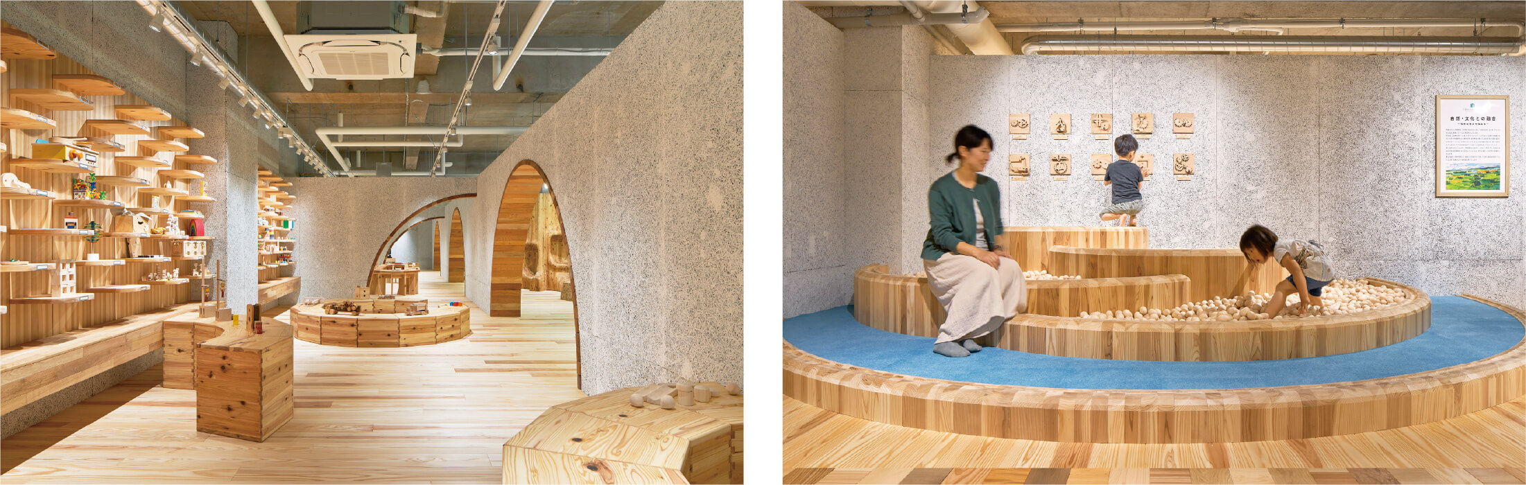 2020年7月マルカンビル2階にオープンした岩手県産材をふんだんに使った体験型木育施設です。