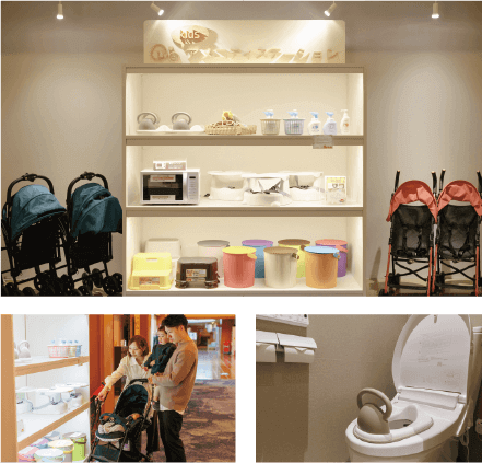 お子様向けの貸出グッズを多数ご用意しております。ご宿泊のお客様は無料でご利用できますので、必要な分だけこちらからお取りください。