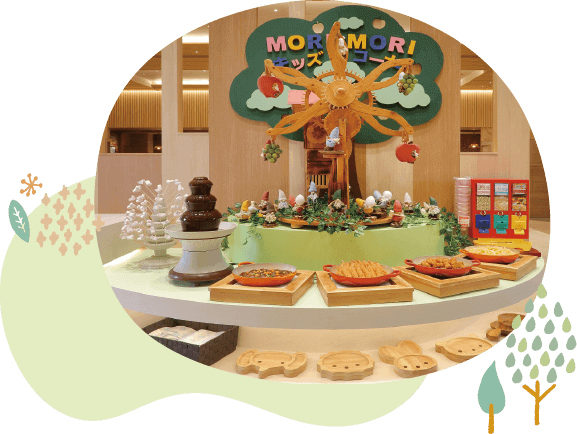 キッズ専用の料理台「MORI×MORIキッズコーナー」では、子供たちが大好きな「わんぱくメニュー」が盛りだくさん!